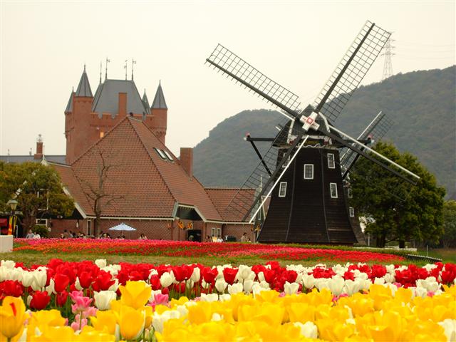 チューリップが非常に綺麗で良かったですよ。晴れだったらもっと綺麗だったのにねぇ・・・チョット残念だけど、今度来るときは晴れの時に来よう。